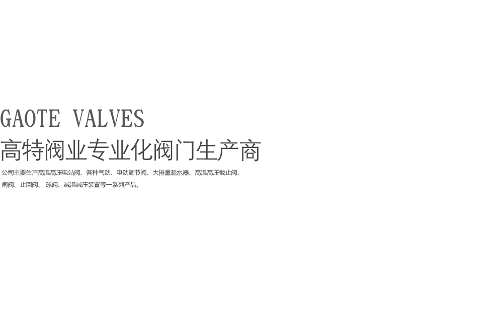 公司主要生產高溫高壓電站閥、各種氣動、電動調節閥、大排量疏水器、高溫高壓截止閥、